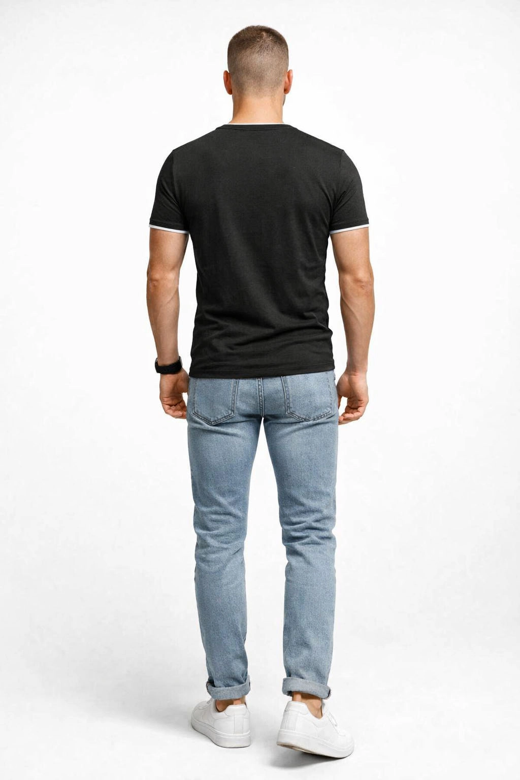 Koszulka męska czarna - gładki t-shirt męski jest nie tylko wygodnym elementem garderoby, ale również uniwersalnym, łatwo łączącym się z innymi ubraniami, co czyni go świetnym wyborem na co dzień. Posiada okrągły dekolt, co nadaje mu klasyczny wygląd. To uniwersalne rozwiązanie, które pasuje do różnych stylizacji i wygląda dobrze solo lub jako warstwa pod kurtką czy swetrem. Wykonany z elastycznej dzianiny, która dopasowuje się do ciała. Z tyłu koszulka również bez dodatków i nadruków, tak jak z przodu. Skład materiału koszulki: 65% bawełna , 35% poliester.