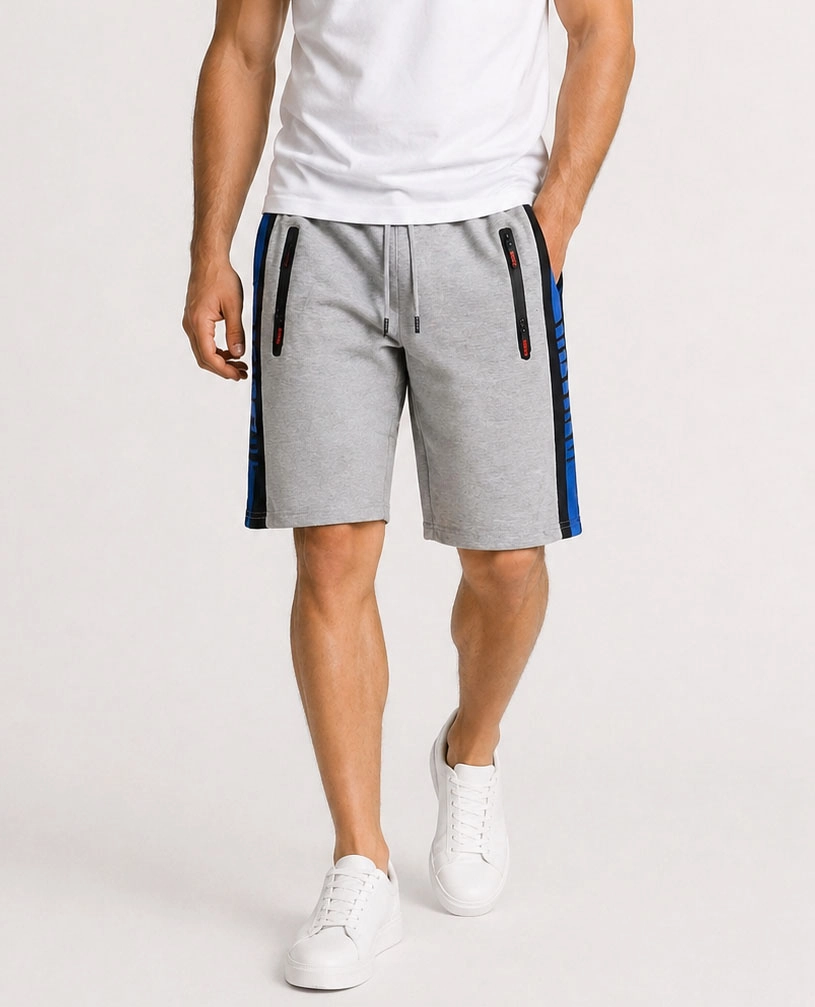 Spodenki męskie z ściągaczem i sznurkiem dresowe szare Recea